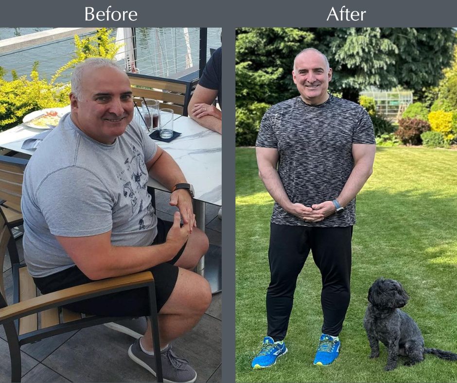 SB – The turning point for me was twofold. Firstly, I was already going through a rehabilitation program for my knee following initial physio treatment from Claire at Revival. Secondly, I remember feeling constantly tired and out of breath after simple activities such as climbing the stairs at home or out for a walk with my wife and our two dogs. One day, I looked in the mirror and decided that enough was enough. I wanted to feel strong, healthy, and confident. That decision marked the beginning of my fitness journey, and I haven’t looked back since. Finally, having the unwavering support of my wife and family made all the difference, encouraging me to stay committed and focused.